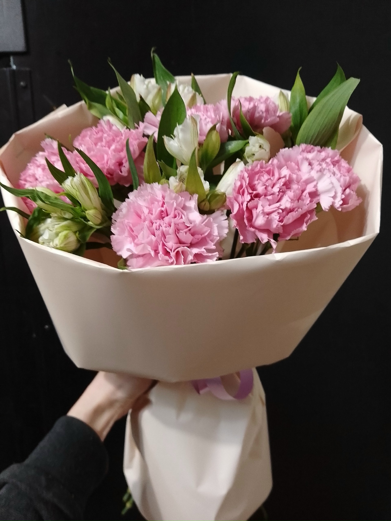 альстромерия 4 шт, гвоздика 7 шт, упаковка