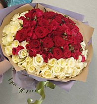 розы 4 шт,зелень декоративная 1 шт, орхидея 1 ветка, упаковка