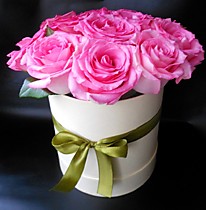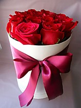 розы 13 шт, шляпная коробка, губка флористическая, лента атласная