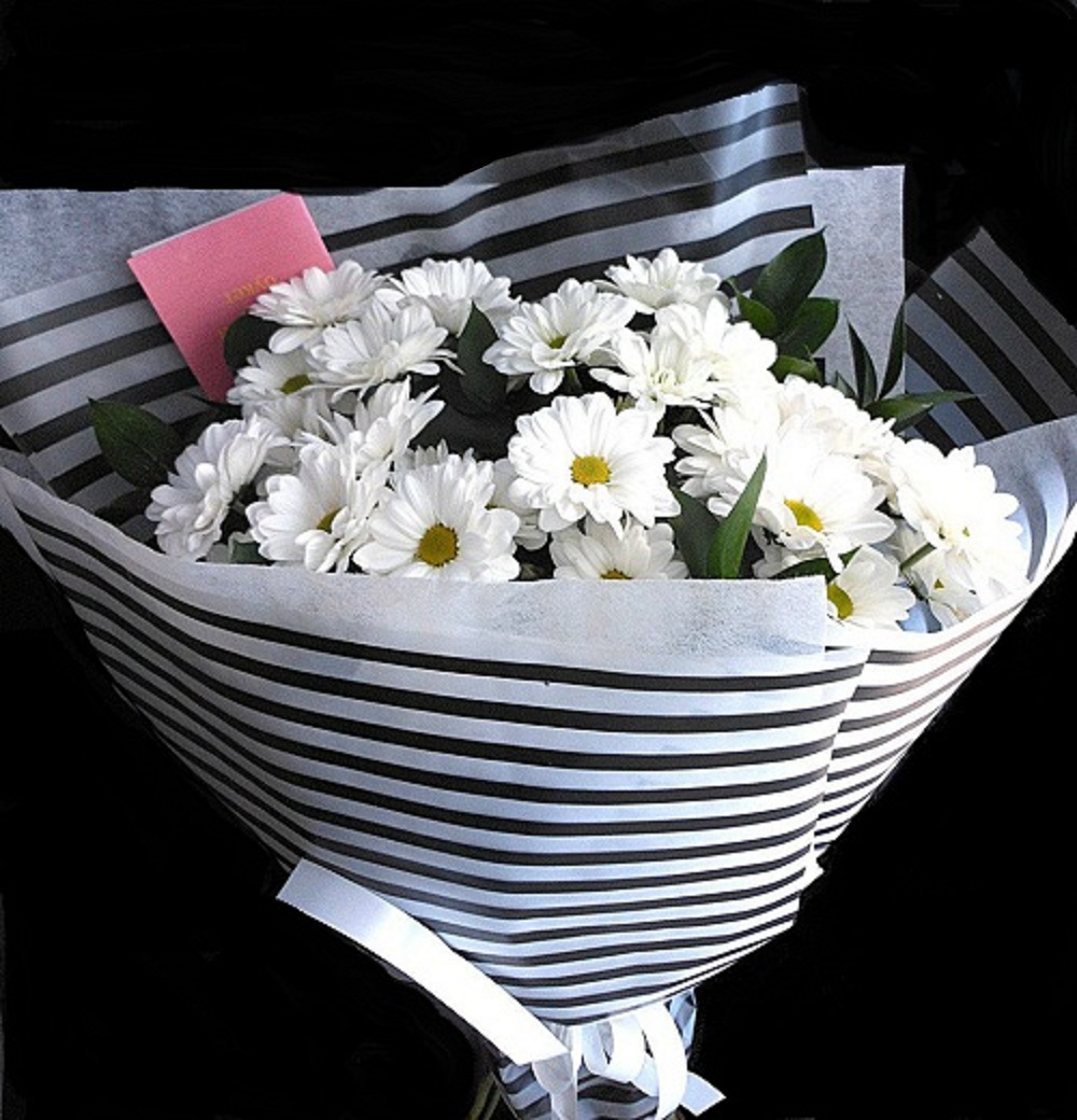 хризантемы 5 шт, зелень,упаковка